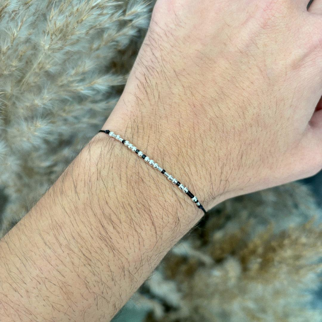 Bratara este realizata manual in atelierul nostru cu snur de calitate premium, grija si atentie la detalii, sistemul reglabil (cu noduri culisante) iti permite sa ajustezi bratara la dimensiunea dorita asigurand o purtare confortabila.