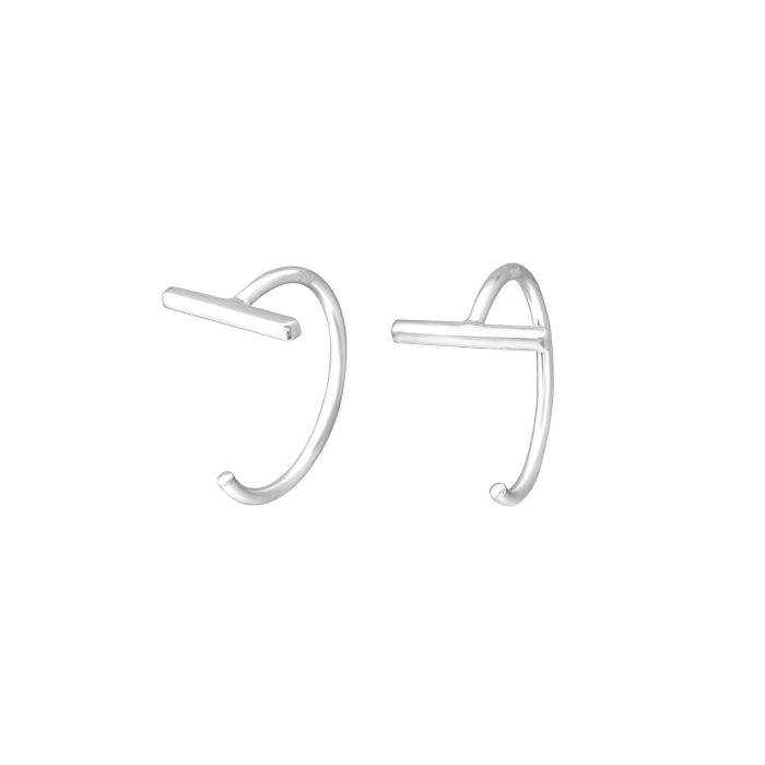 Realizați din argint 925 de calitate, cerceii au un finisaj lucios care reflectă discret lumina, evidențiind liniile curate și proporțiile echilibrate. Bara de 1 mm x 8 mm adaugă un accent subtil, transformând acest model într-o piesă modernă și versatilă.