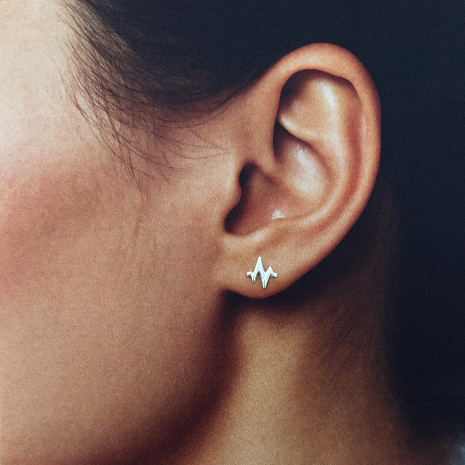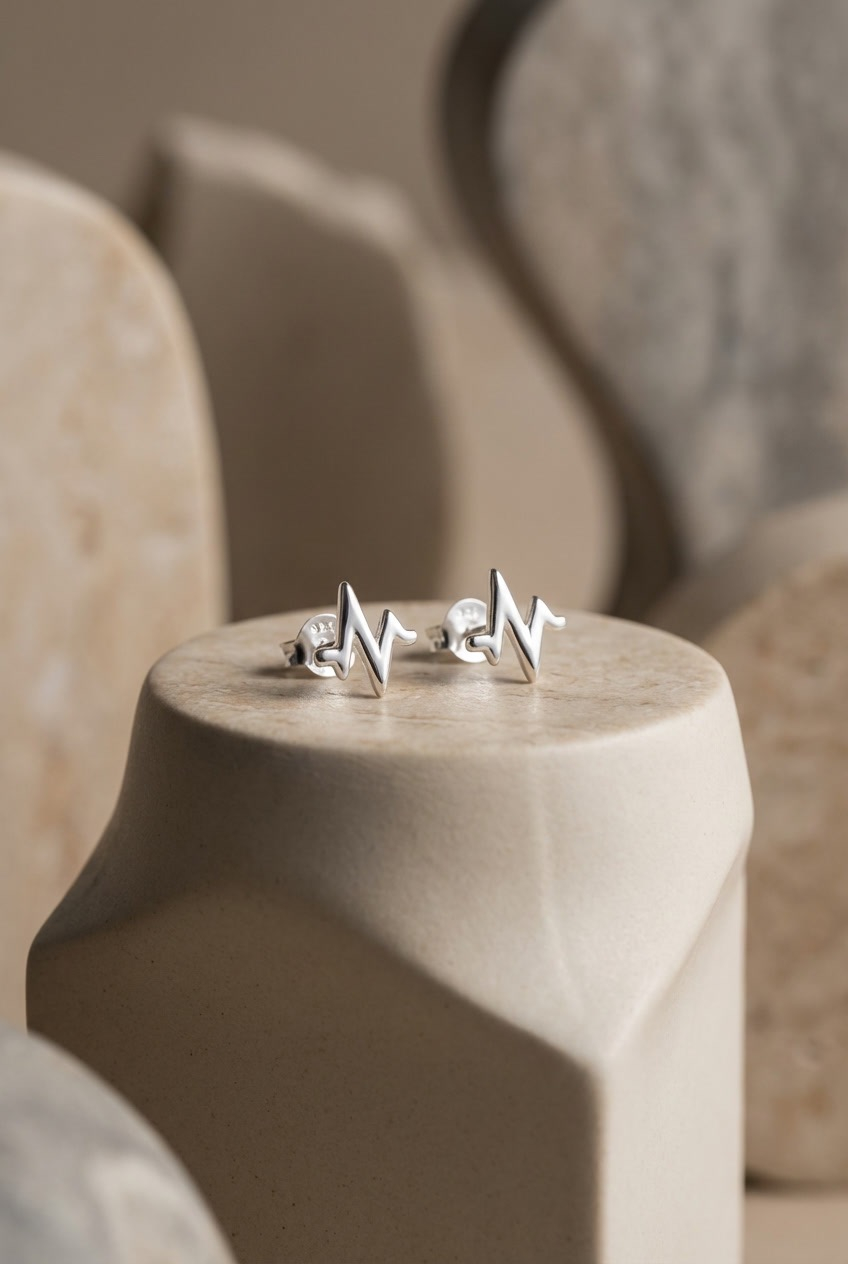 Cercei din argint 925 „Puls” – cercei stud cu simbolul bătăilor inimii