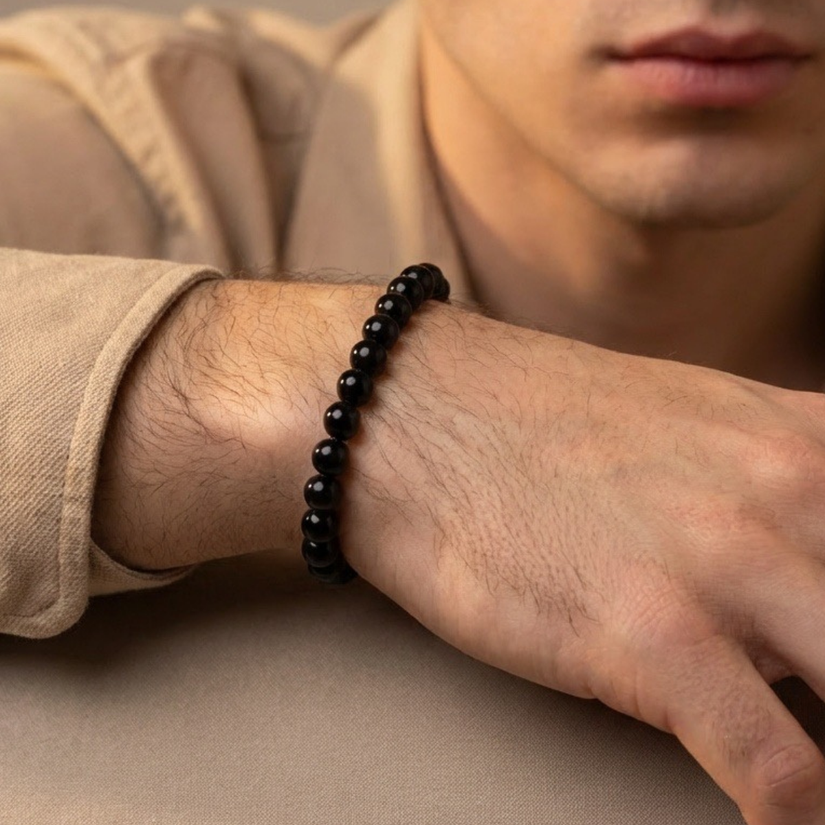 Onixul este o piatră cu un negru profund și lucios, care oferă brățărilor un aspect minimalist și sofisticat.