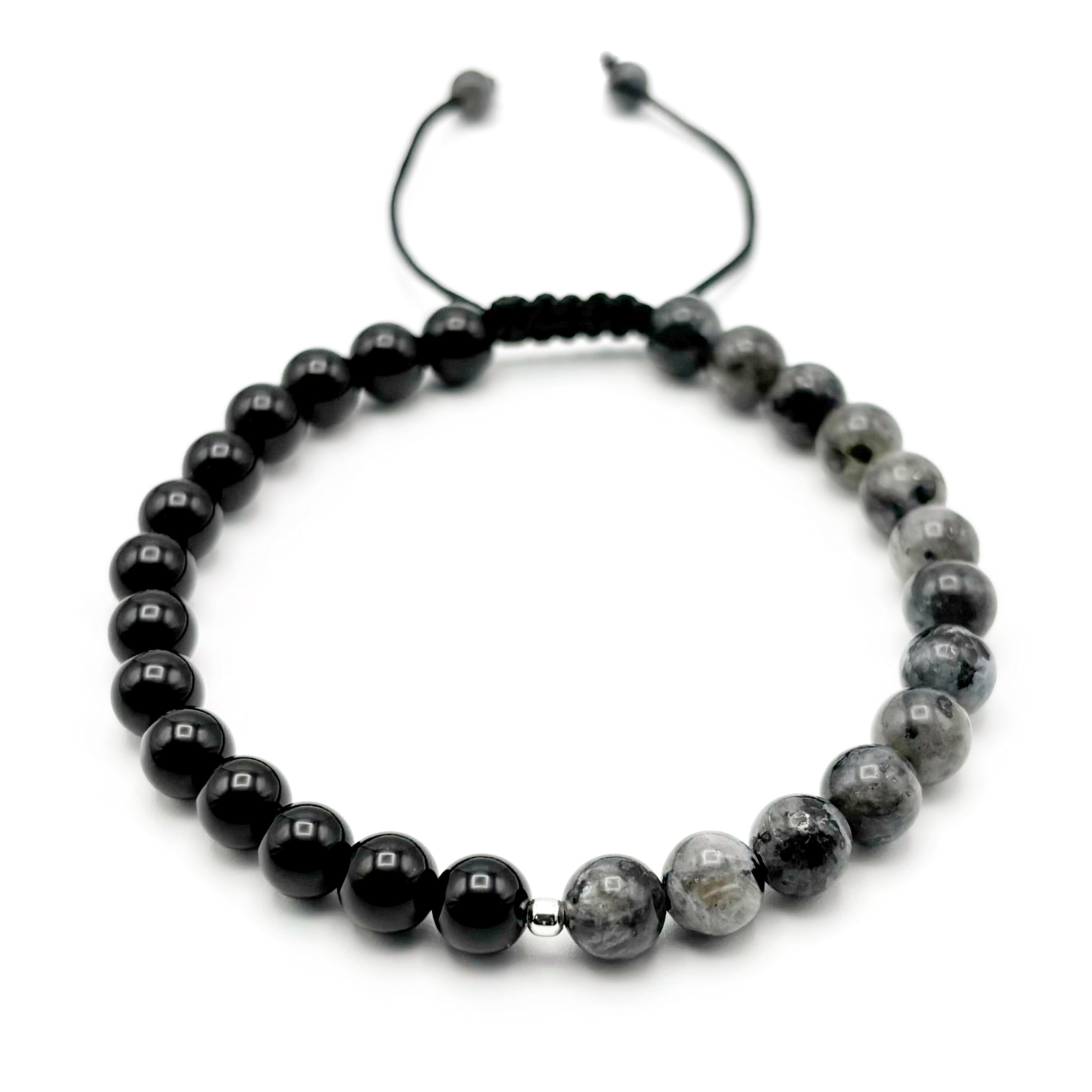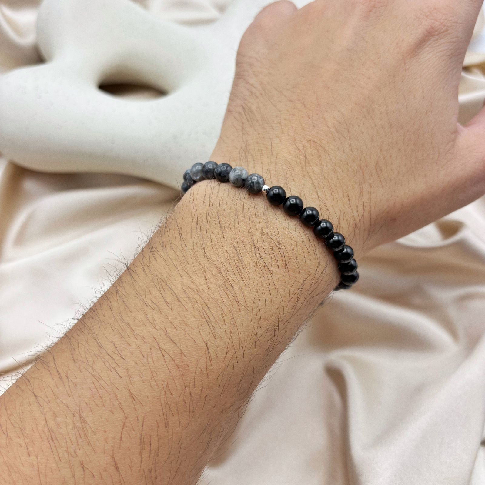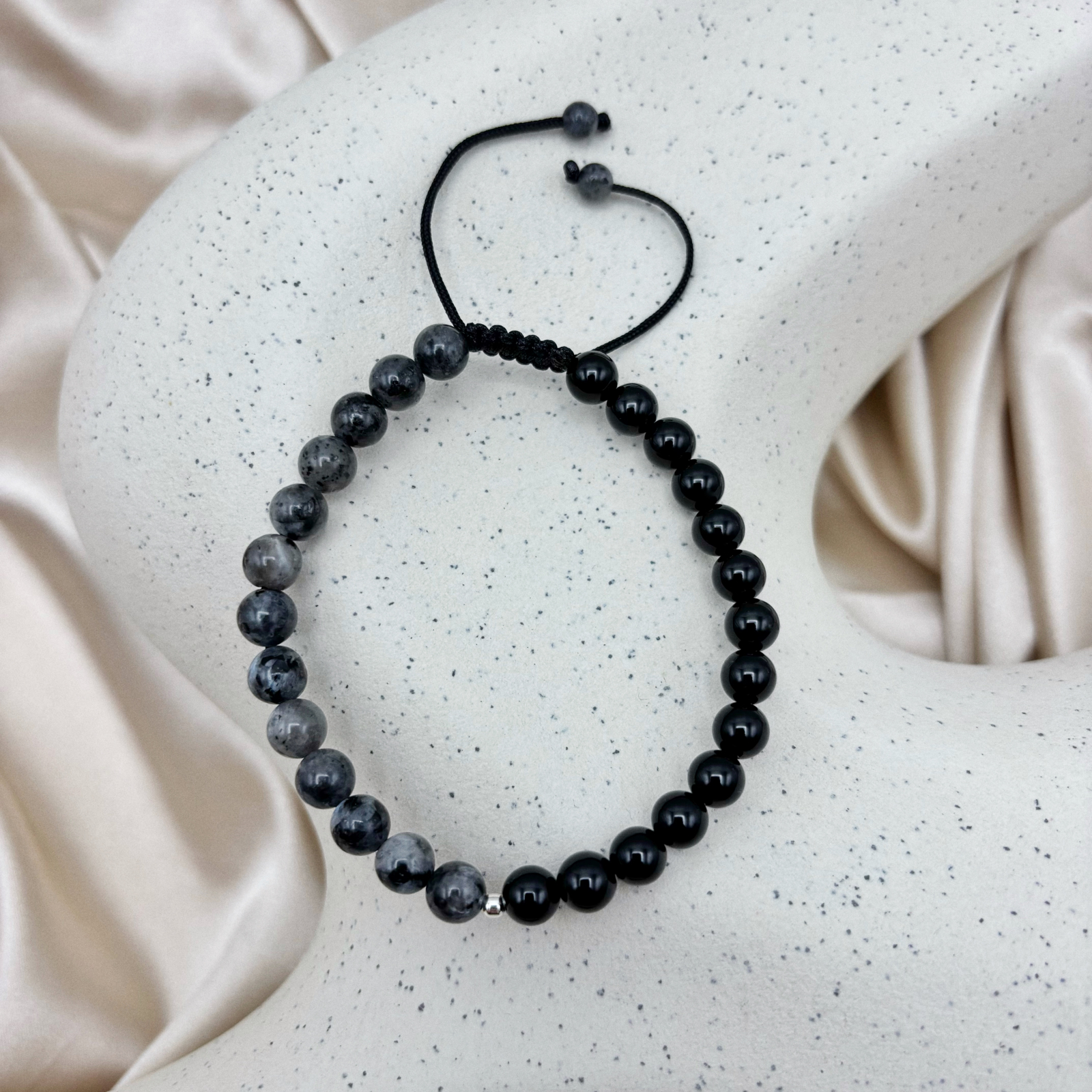 O brățară statement, creată manual în atelierul Bijuteria Neagră, ce îmbină energia misterioasă a Onixului cu reflexiile hipnotice ale Labradoritului. Realizată din pietre naturale de 6 mm și accentuată de o biluță fină din argint 925 (2,5 mm), această bijuterie minimalistă devine accesoriul perfect pentru un stil rafinat și intuitiv.
