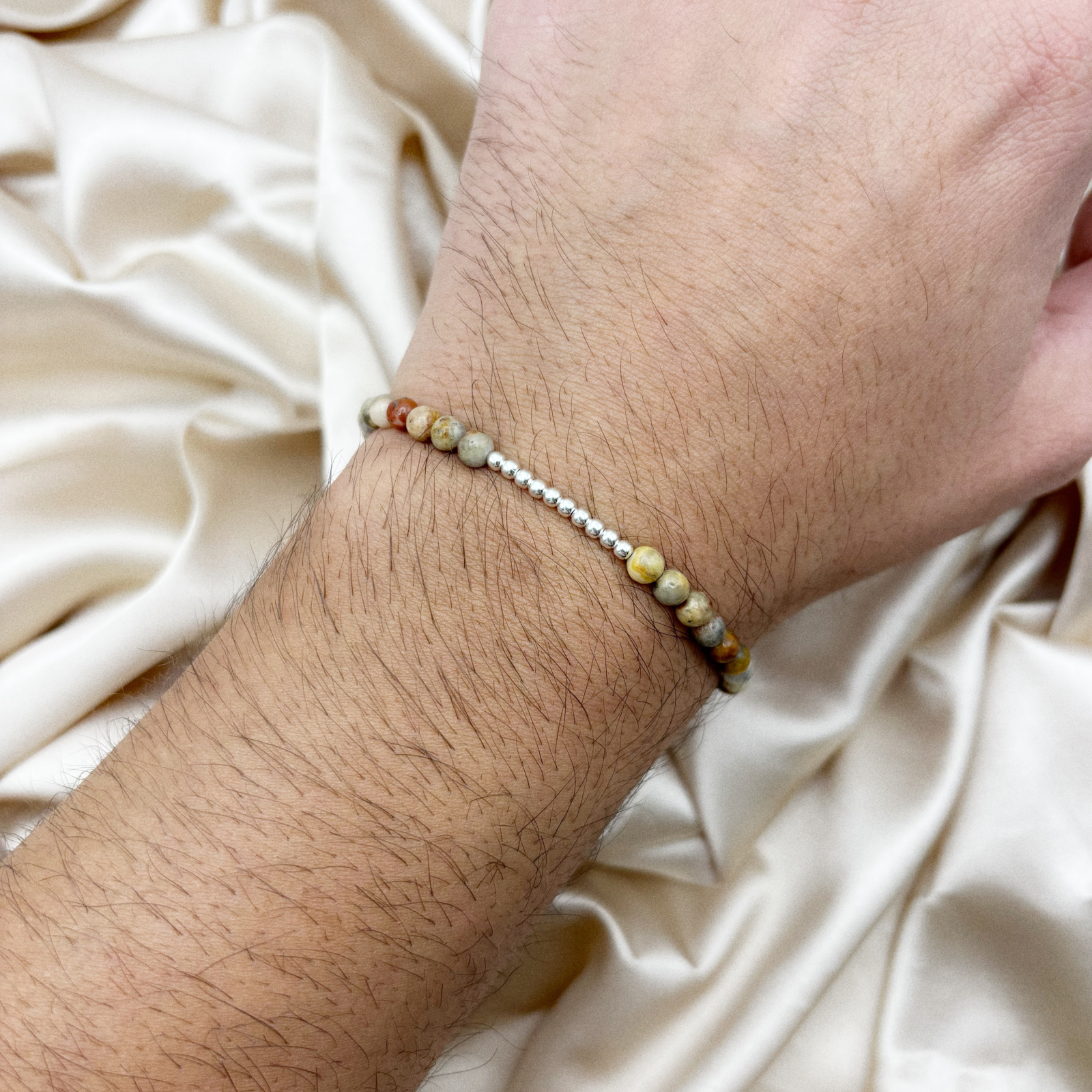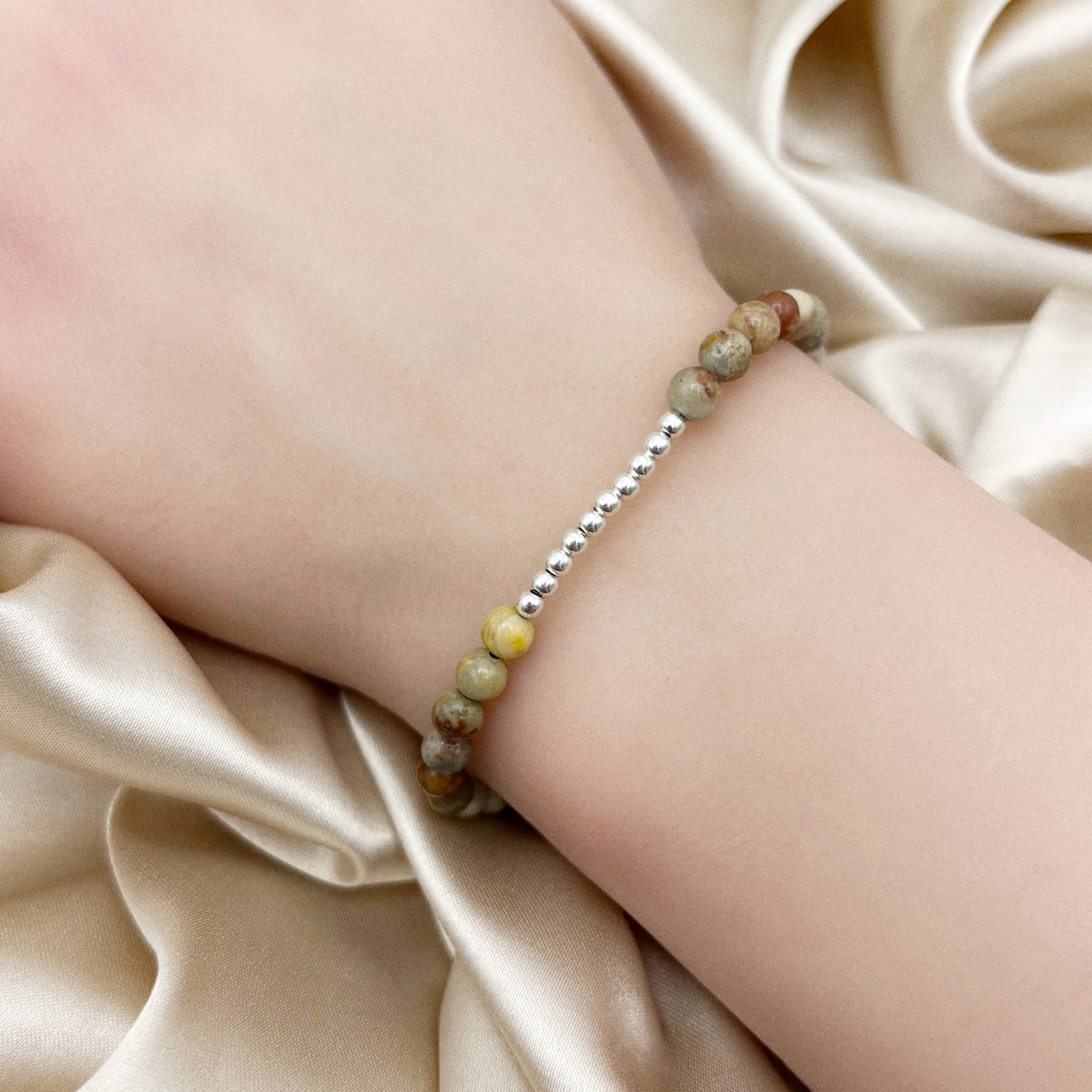 Bratara reglabila cu bile din Argint si pietre semipretioase naturale este o bijuterie care imbina eleganta cu rezistenta. Realizata in atelierul nostru cu materiale de calitate premium, grija si atentie la detalii.