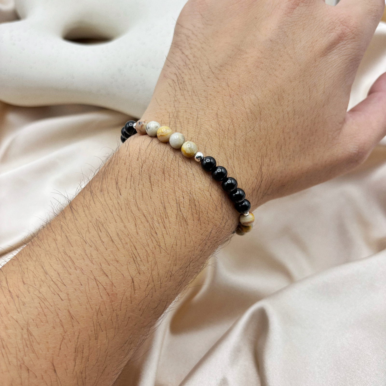 Descoperă o brățară creată pentru cei care apreciază designul minimalist, energia pietrelor naturale și detaliile rafinate. Realizată manual în atelierul Bijuteria Neagră, această brățară combină armonios pietre naturale de Onix negru și Agat de 6 mm, completate de bile fine din argint 925, pentru un look contemporan, sofisticat și ușor de purtat zi de zi.