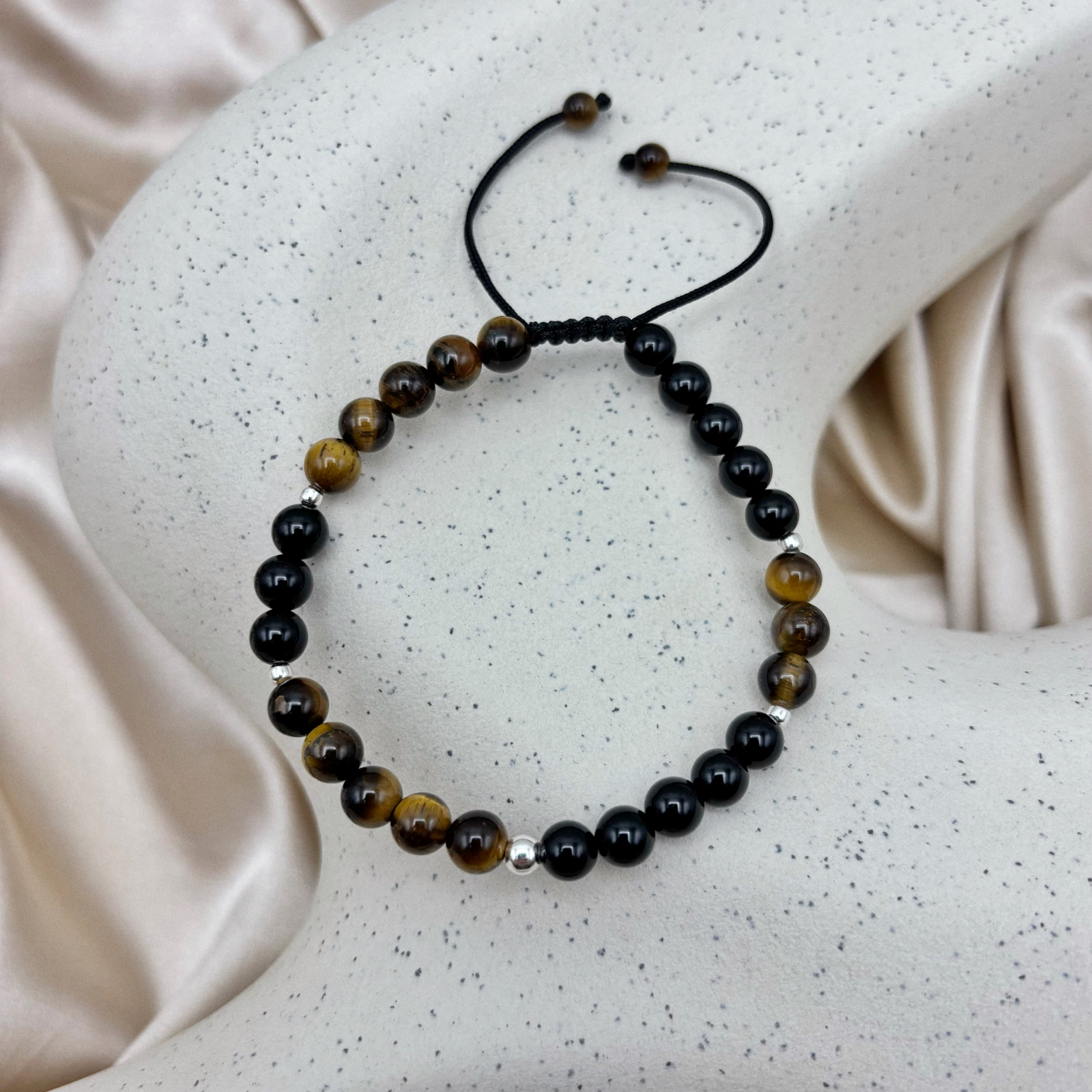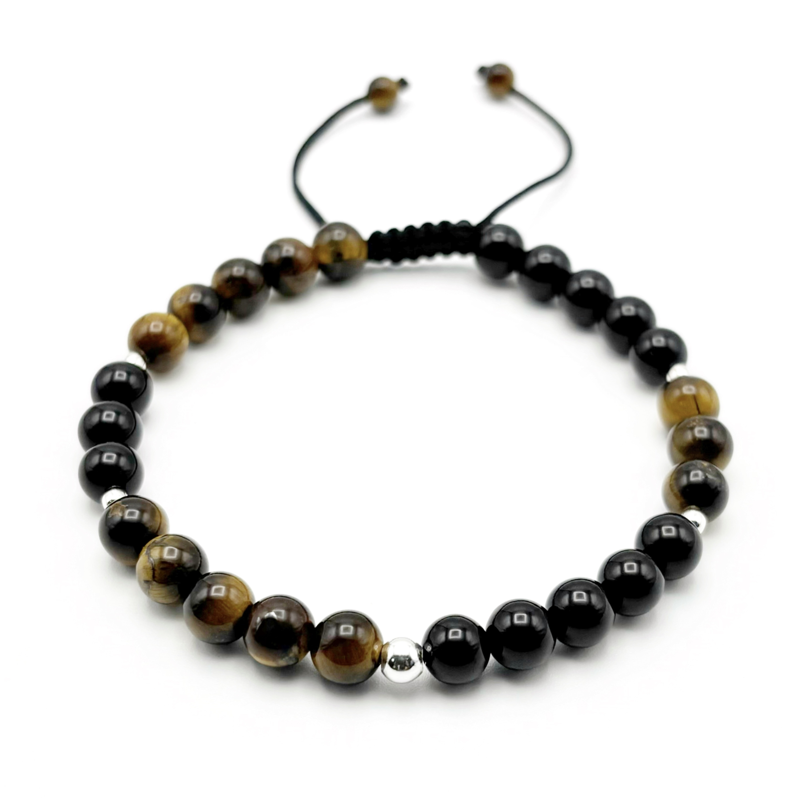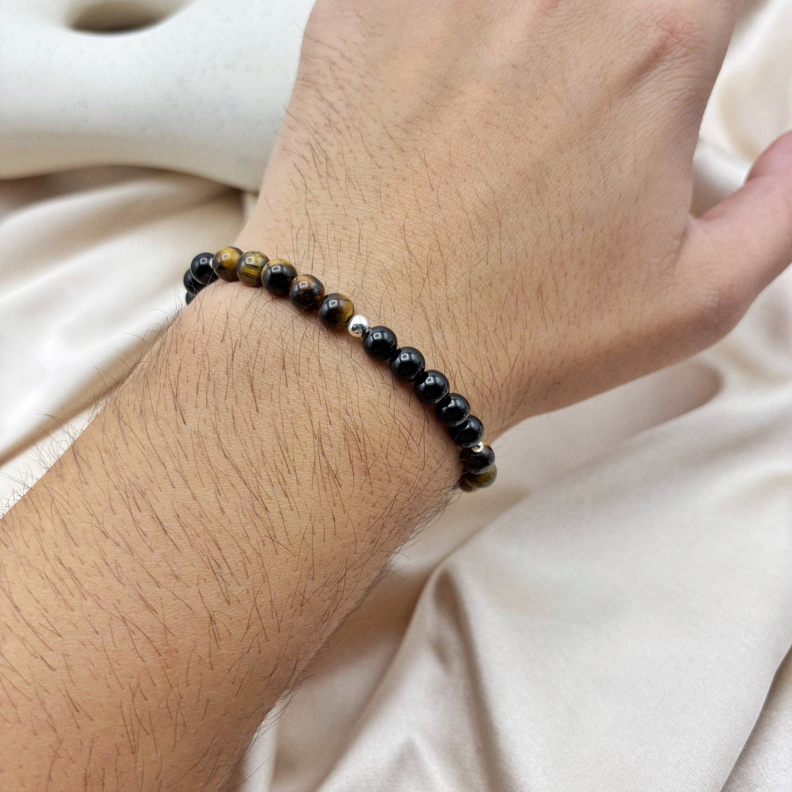 Brățară cu Onix, Ochi de Tigru și Accente din Argint 925