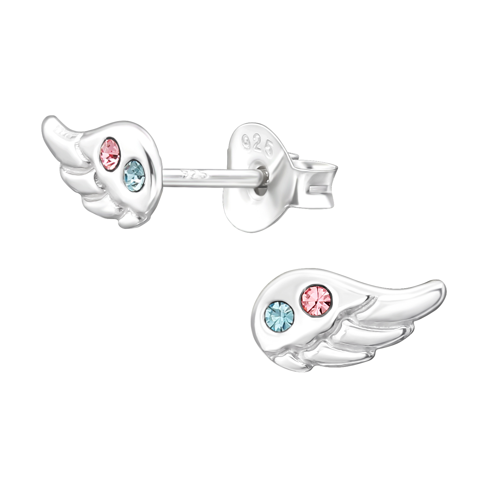 Cerceii sunt realizați din argint 925 de calitate, cu un finisaj neted și lucios care evidențiază liniile fine ale designului. Fiecare piesă este decorată cu două cristale zirconia colorate, atent montate, care adaugă un contrast subtil și o notă de strălucire jucăușă. Reflexiile discrete oferă un efect delicat, fără a încărca vizual bijuteria.