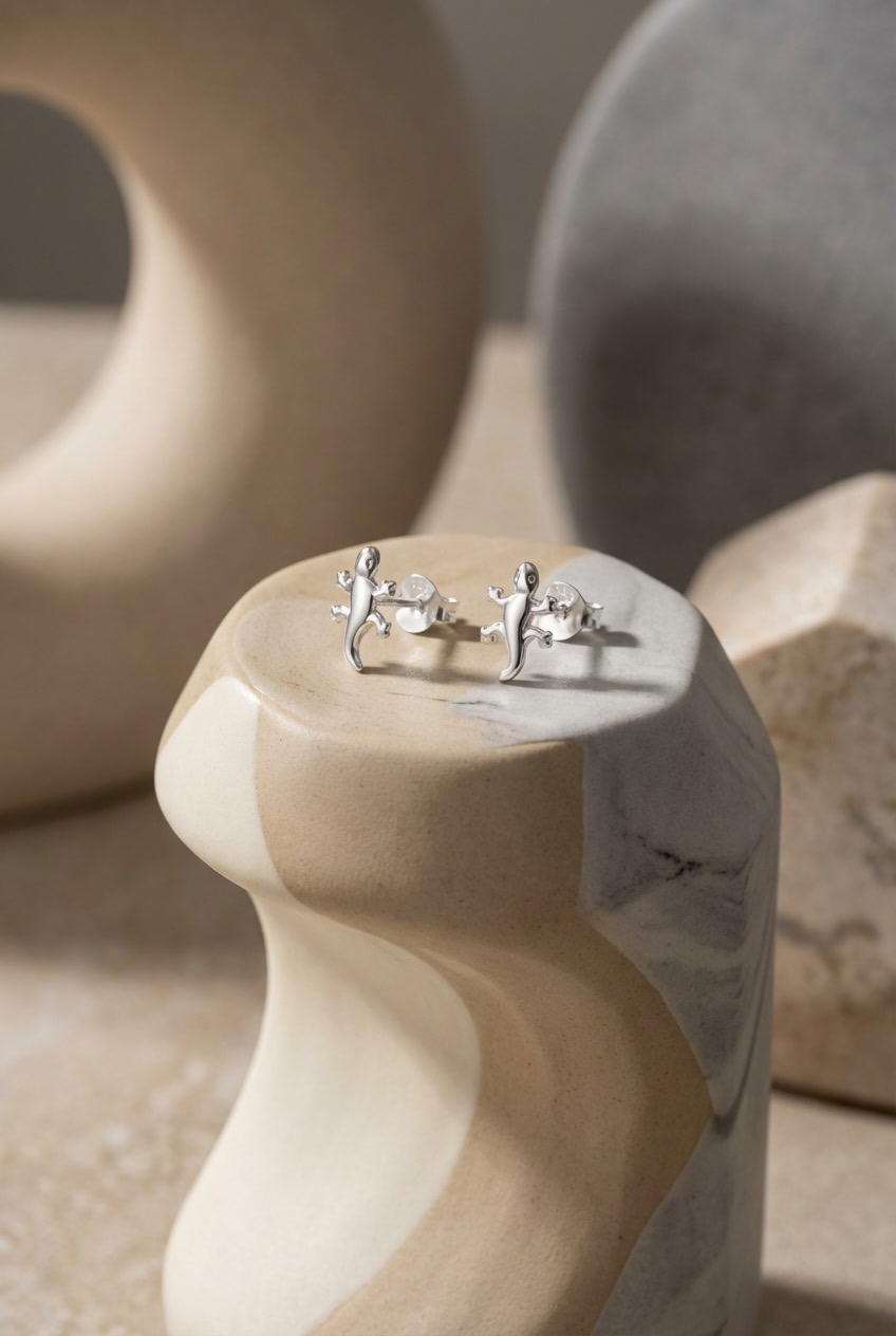 Cercei din argint 925 cu șopârlă – cercei stud cu design jucăuș și simbol al adaptabilității