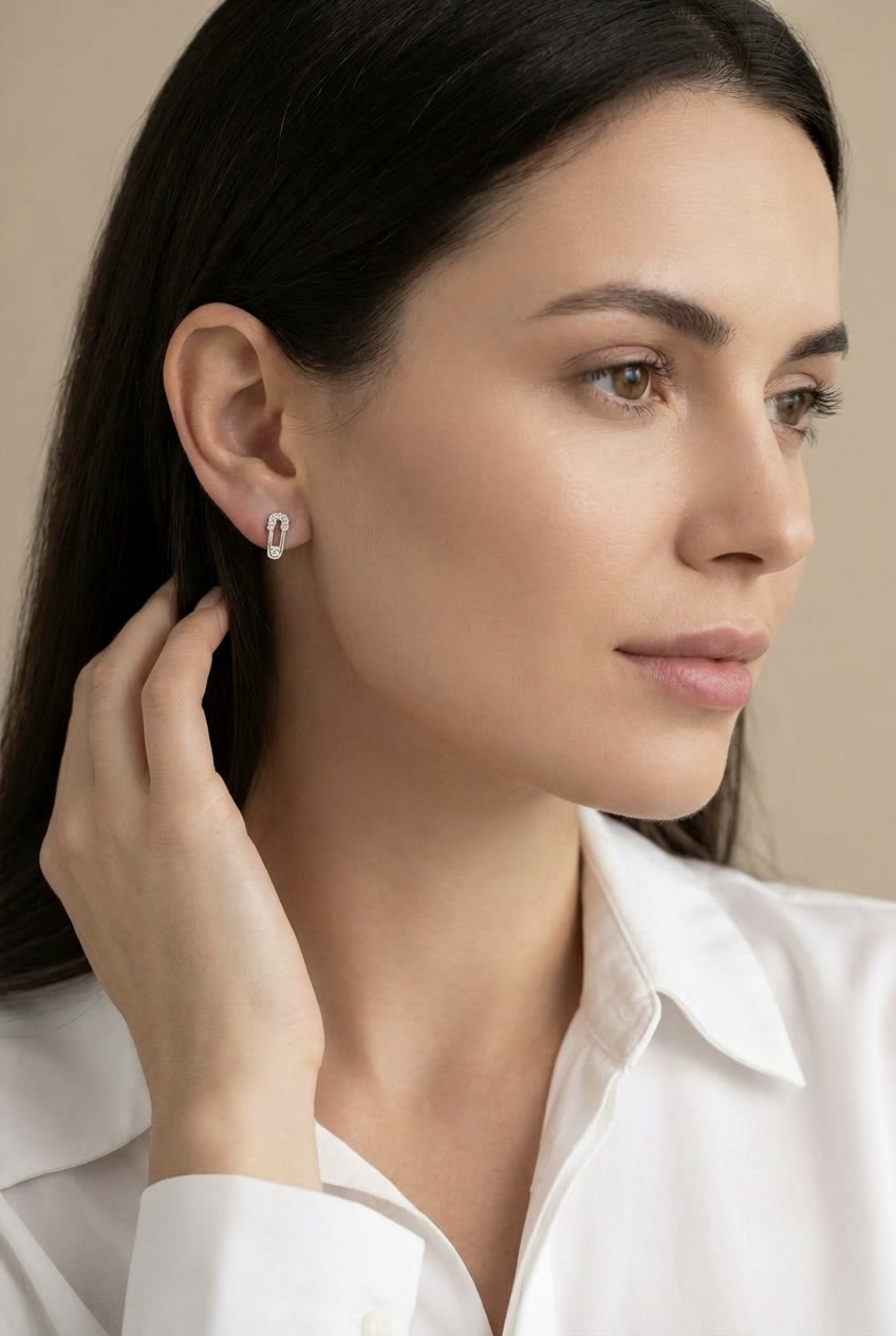 Acești cercei din argint 925 tip ac de siguranță sunt alegerea perfectă pentru femeile care își doresc bijuterii moderne, discrete și ușor nonconformiste. Designul minimalist, inspirat de forma clasică a acului de siguranță, este completat elegant de o piatră zirconiu fin montată, care adaugă un accent subtil de strălucire.