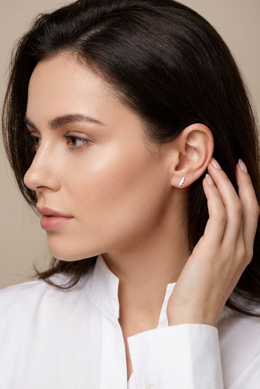 Cercei din argint 925 cu fulger – cercei stud moderni și îndrăzneți