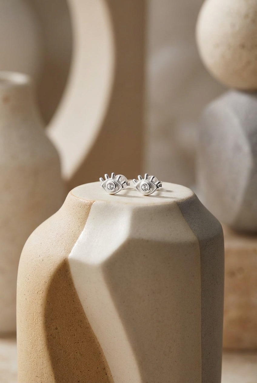 Cercei din argint 925 cu ochi și zirconiu – cercei stud cu simbol protector
