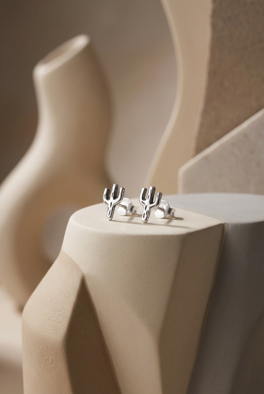 Cercei din argint 925 cu cactus – cercei stud moderni și jucăuși