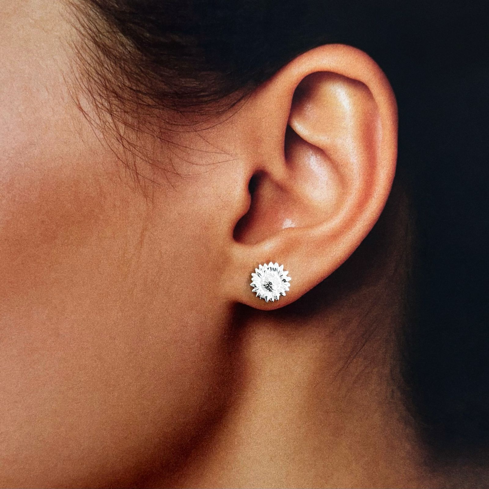 Acești cercei din argint 925 cu Floarea Soarelui sunt o bijuterie delicată și plină de lumină, creată pentru a aduce un plus de optimism și eleganță fiecărei ținute. Realizați din argint 925 autentic, cerceii reproduc cu o finețe deosebită forma naturală a florii, cu petale atent conturate și un centru texturat care creează un contrast vizual rafinat și un efect de profunzime spectaculos.