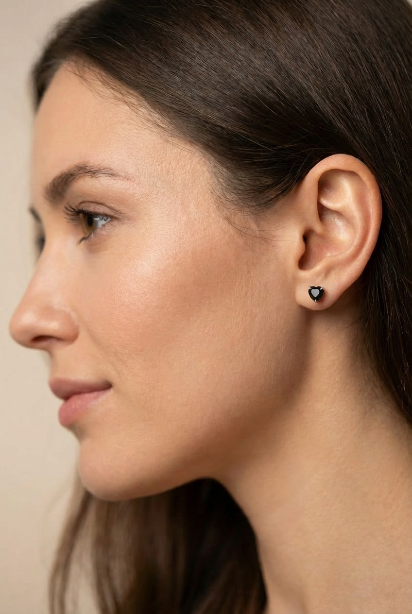 Forma de inimă adaugă o notă feminină și simbolică, în timp ce nuanța profundă a zirconului negru transformă această bijuterie într-un accesoriu modern, ușor de asortat atât cu ținute casual, cât și cu outfituri elegante sau minimaliste. Sistemul de prindere tip tijă cu fluturaș asigură o fixare sigură și un confort sporit la purtare.