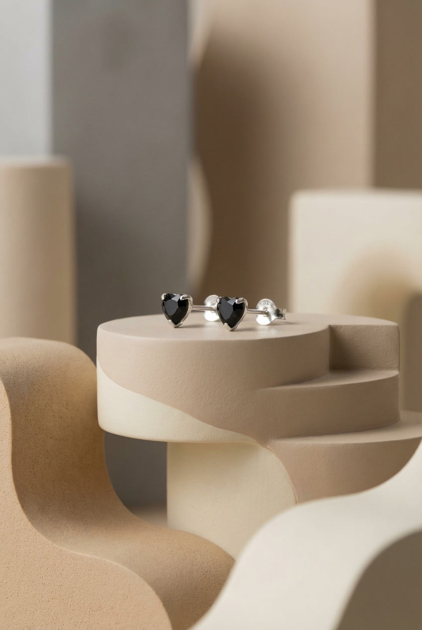 Forma de inimă adaugă o notă feminină și simbolică, în timp ce nuanța profundă a zirconului negru transformă această bijuterie într-un accesoriu modern, ușor de asortat atât cu ținute casual, cât și cu outfituri elegante sau minimaliste. Sistemul de prindere tip tijă cu fluturaș asigură o fixare sigură și un confort sporit la purtare.