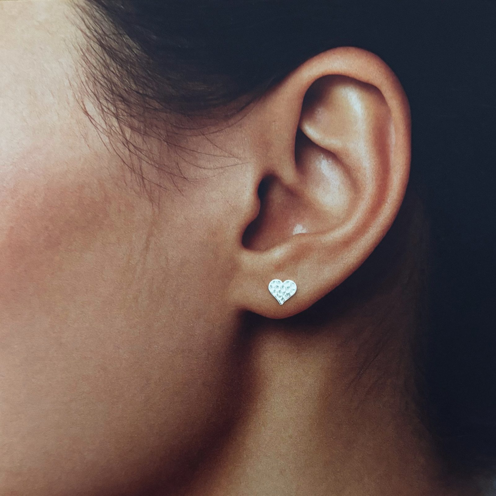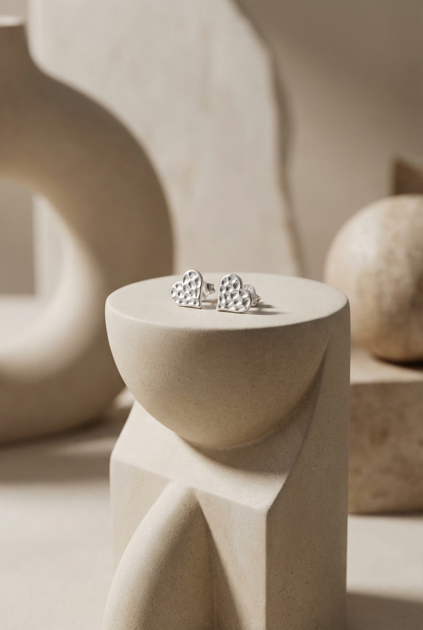 Cercei din argint 925 cu inimioare texturate – cercei stud fini și moderni