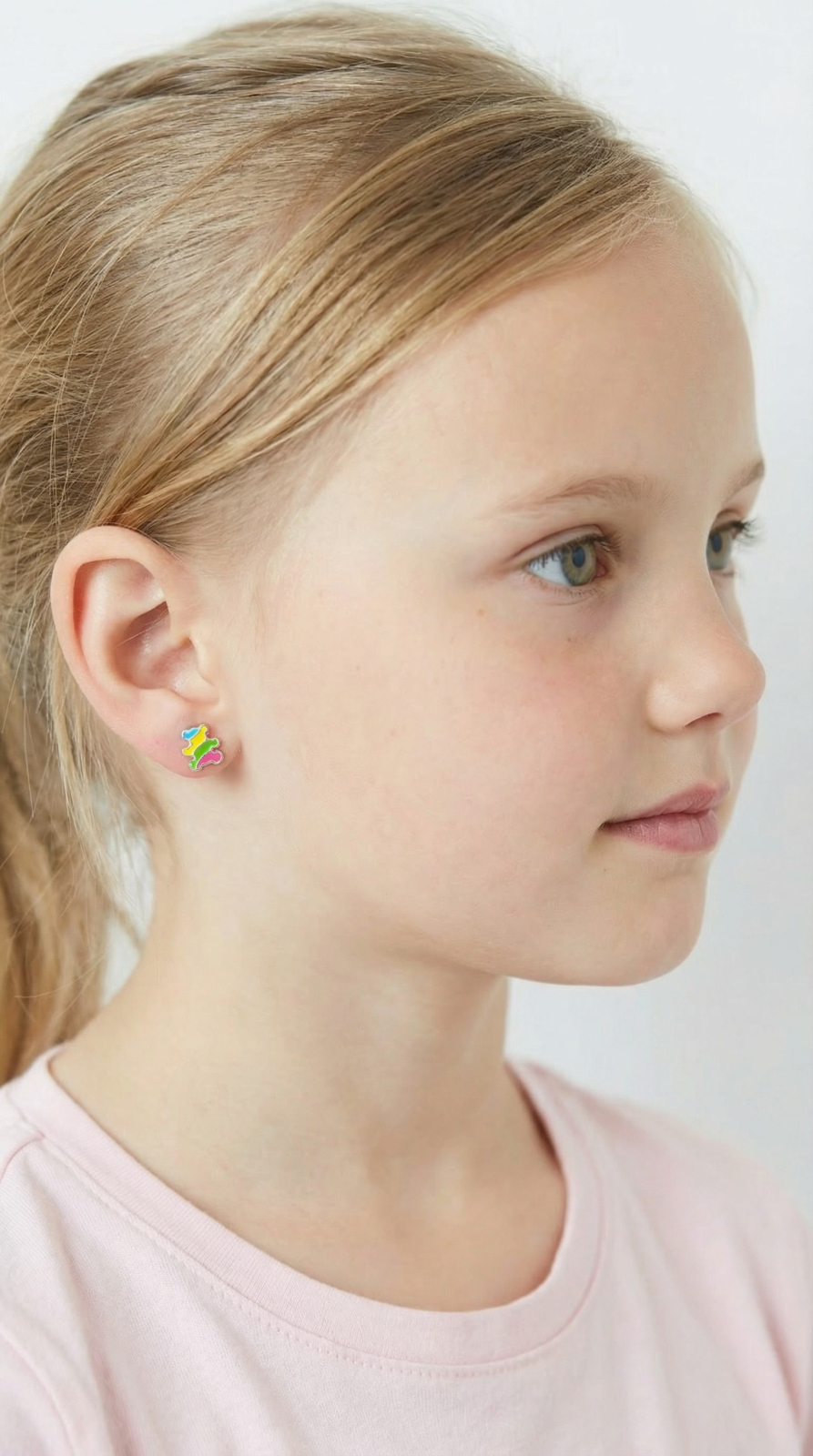 Acești cercei delicati pentru copii sunt potriviți pentru școală, joacă sau activități zilnice.